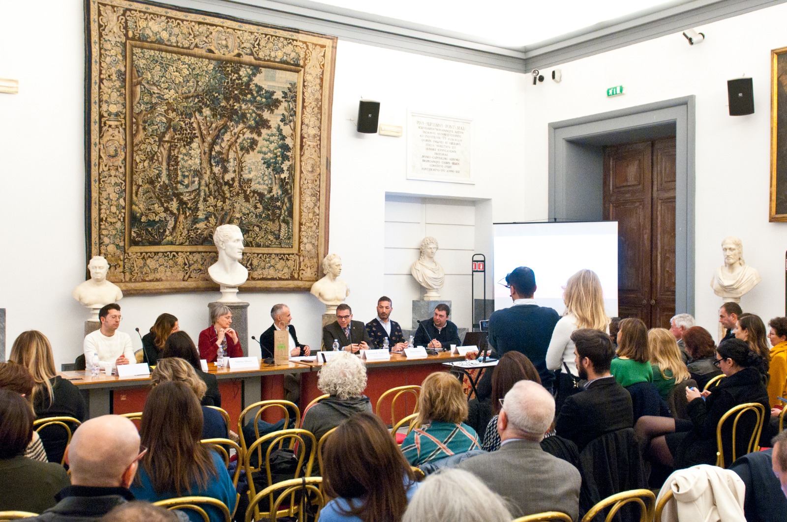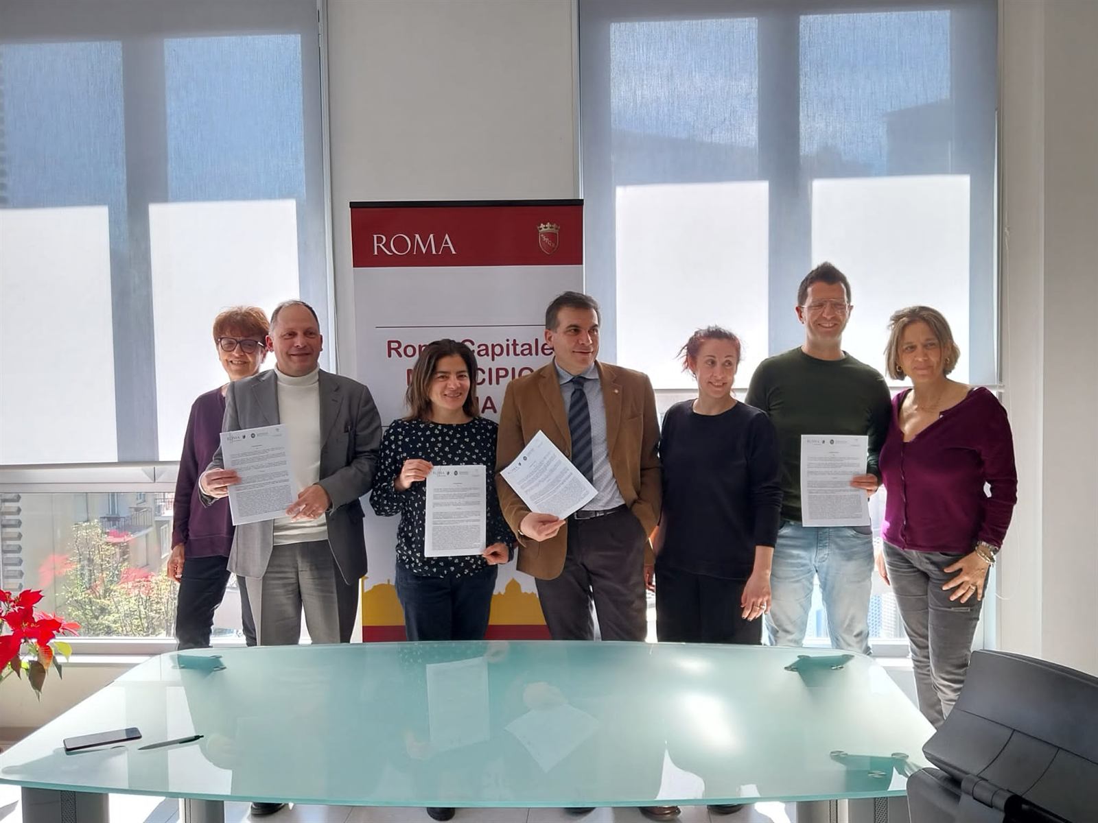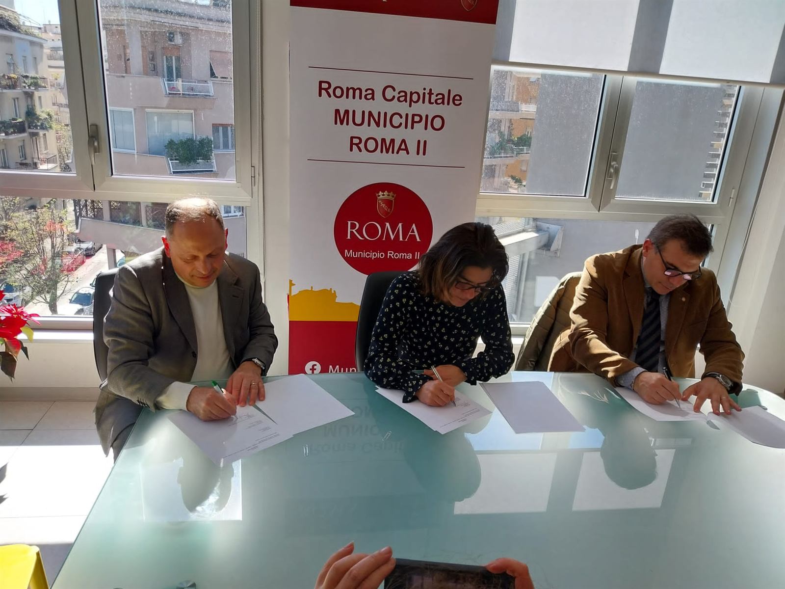 Sezione pronta per le foto e i materiali del lancio dell'app EcoGive al Campidoglio.